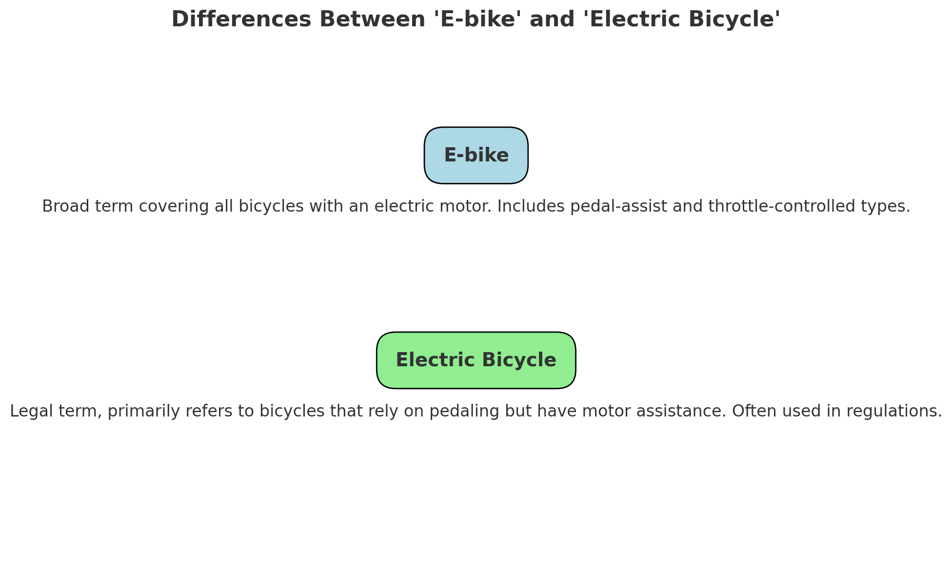 1. E-Bike (Electric Bike) An e-bike is a broad term that refers to any bicycle with an integrated electric motor used to assist with propulsion. E-bikes generally fall